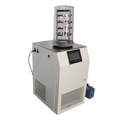 立式凍干機(1臺)、真空泵2XZ-4(1臺、玻璃罩(1個(gè),含上蓋)、不銹鋼樣品架(1個(gè))、不銹鋼樣品盤(pán)(6個(gè))、真空連接管(1根)、