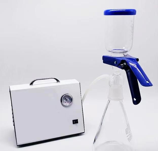 真空泵是提高過(guò)濾效率,加強脫氣效果的重要過(guò)濾配套設備。為保障過(guò)濾介質(zhì)不被污染,一般均使用無(wú)油隔膜式真空泵,此類(lèi)泵型是通過(guò)橡膠膜片的往返運動(dòng)形成真空,其真空壓力一般為0.08Mpa左右(單級),提高過(guò)濾速度關(guān)鍵是單位時(shí)間內的排氣量,及真空泵的流量指標,在過(guò)濾量大、介質(zhì)粘度高時(shí)顆粒堵塞濾膜情況下尤顯突出。